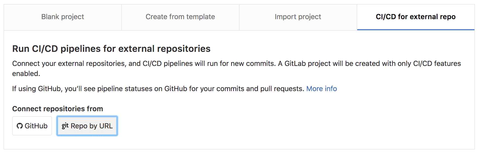 In GitLab create a CI/CD for external repo, select Repo by URL and create the project.