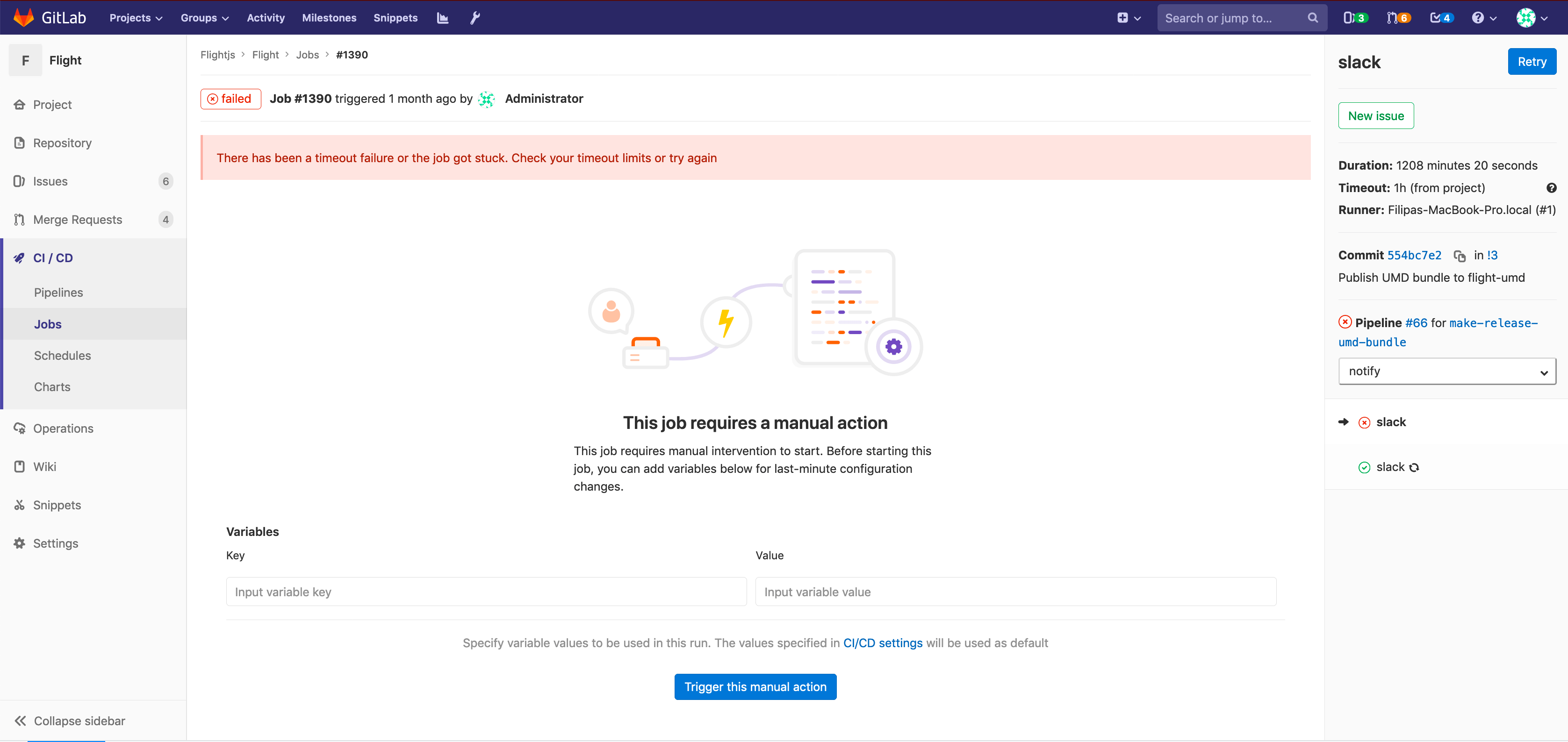 Pipelines can be manually executed, with predefined or manually-specified variables.