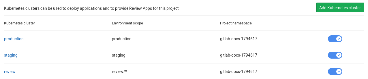 When using Auto DevOps, you may want to deploy different environments to different Kubernetes clusters. This is possible due to the 1:1 connection that exists between them.
