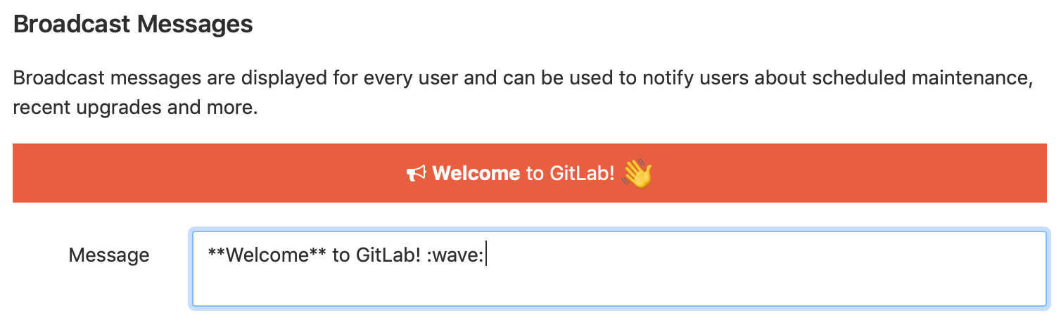 To display messages to users on your GitLab instance, add broadcast message.