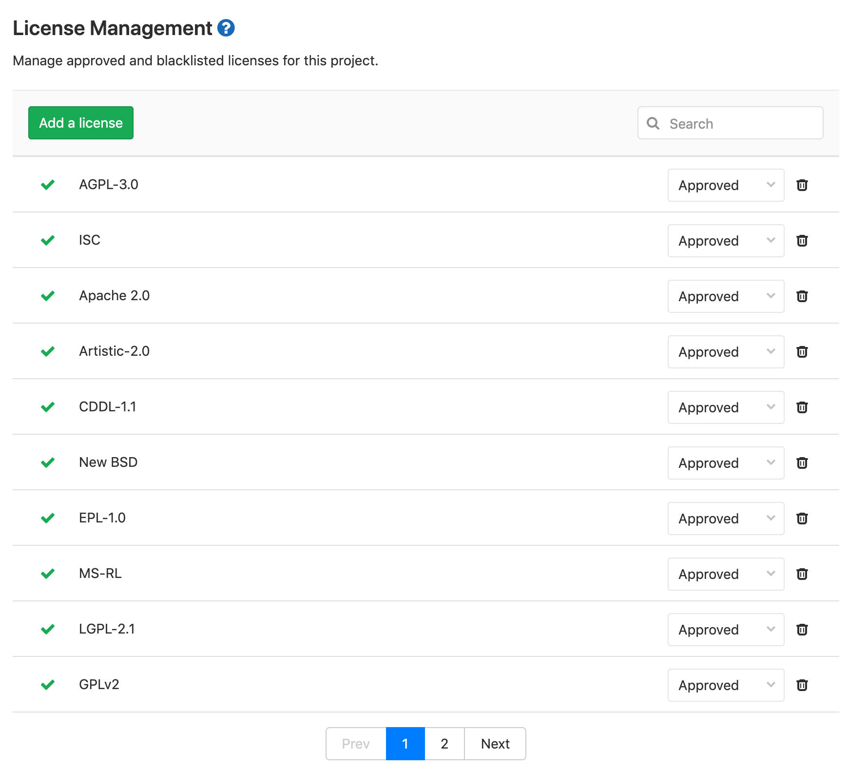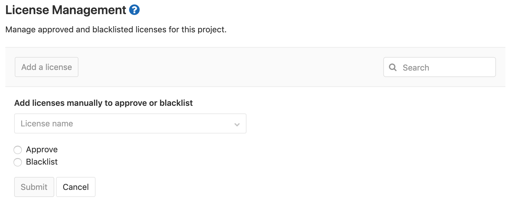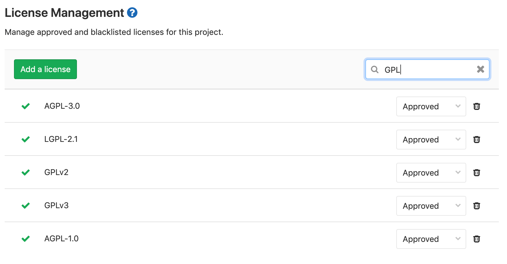 If you are a project or group Maintainer, you can click on a license to be given the choice to approve it or blacklist it.