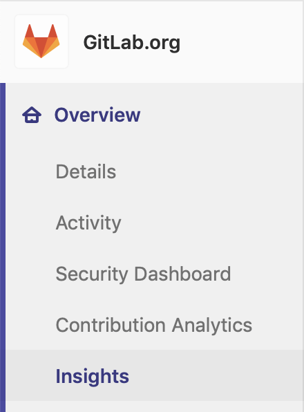 You can access your group's Insights by clicking the Overview > Insights link in the left sidebar: