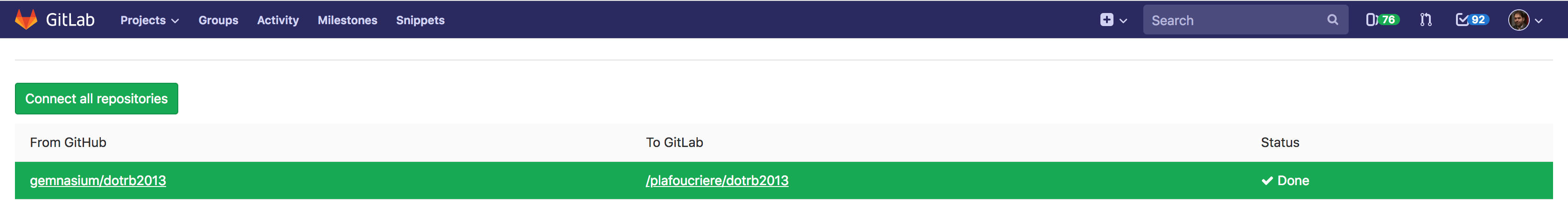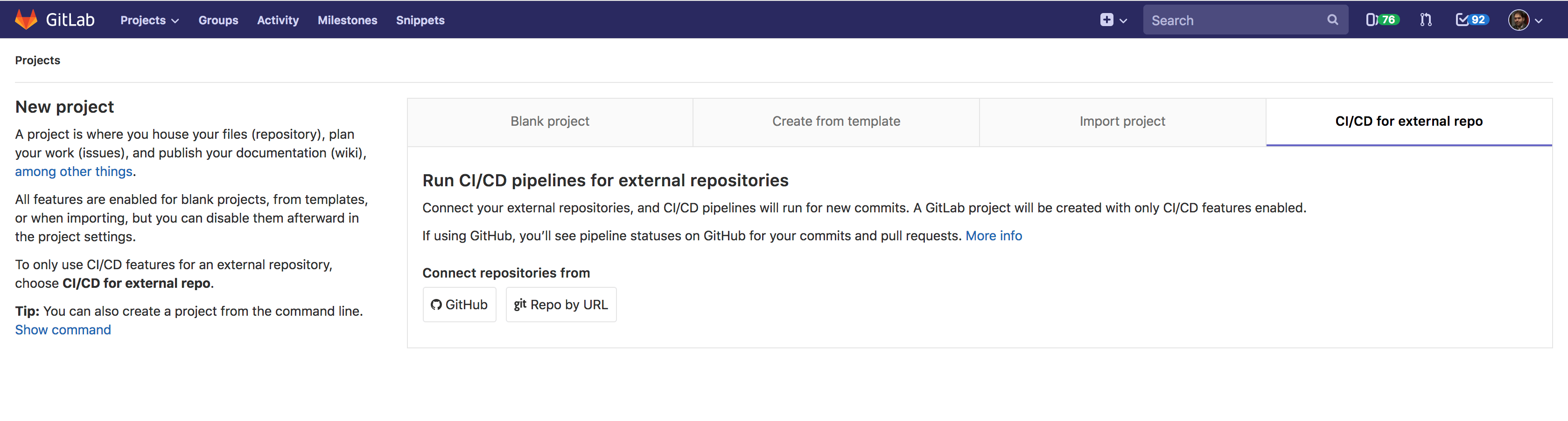 Your project is now mirrored on GitLab, where the Runners will be able to access your source code and run your tests.