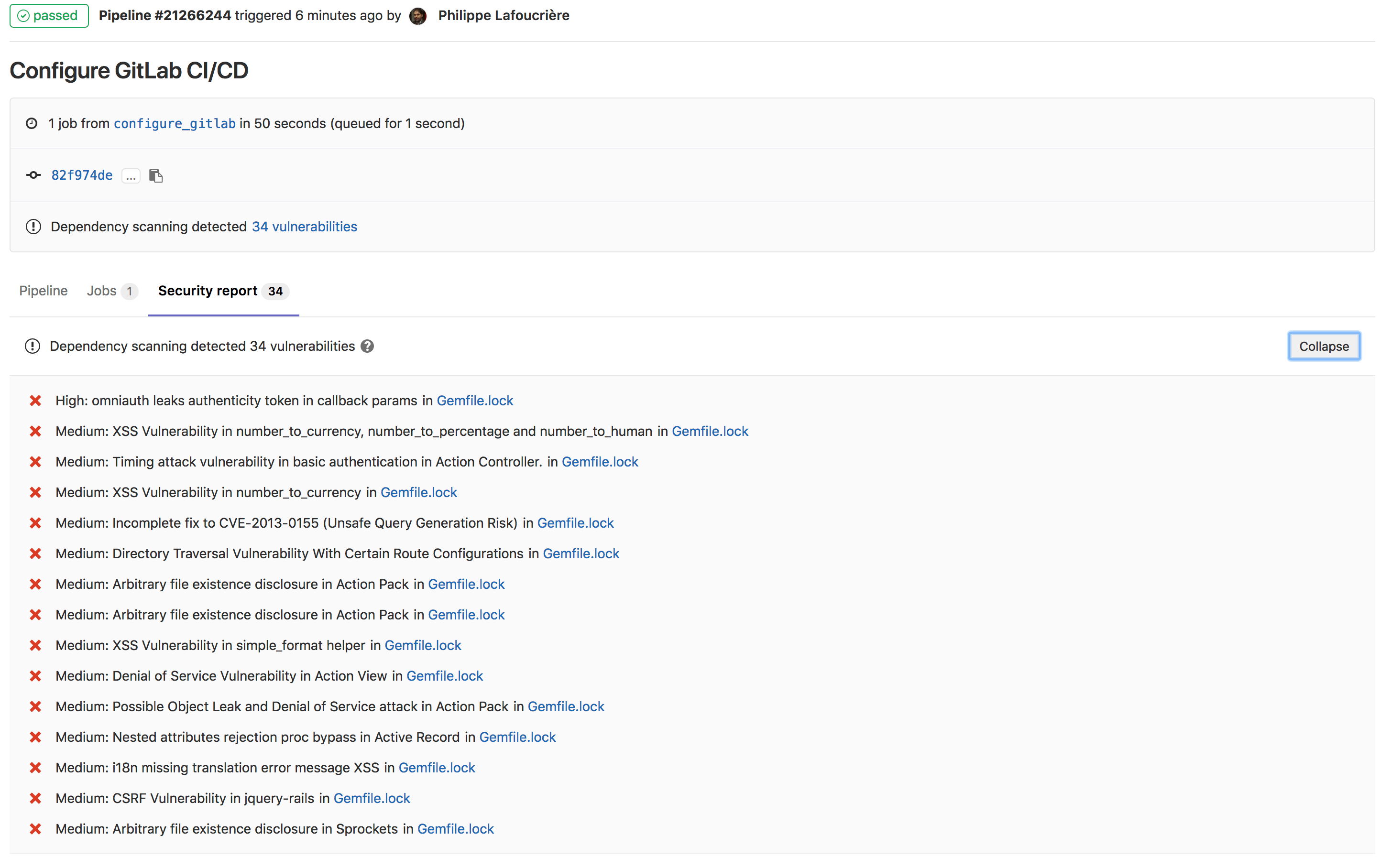 Gemnasium was acquired by GitLab in January 2018. Since May 15, 2018, the services provided by Gemnasium are no longer available. The team behind Gemnasium has joined GitLab as the new Security Products team and is working on a wide range of tools, including: