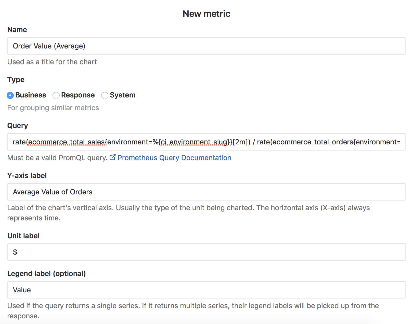 - Type: Type of metric. Metrics of the same type will be shown together.