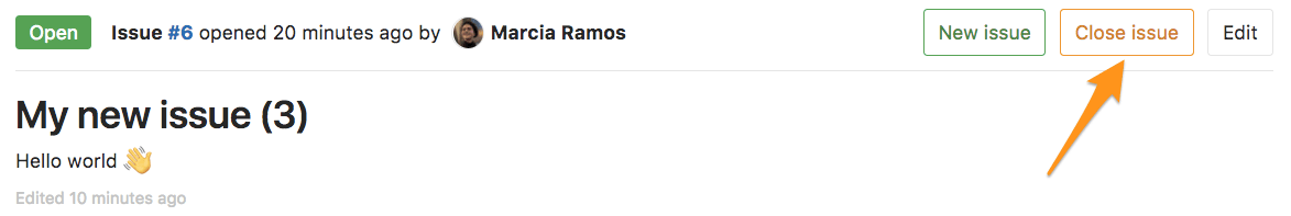 When you decide that an issue is resolved, or no longer needed, you can close the issue using the close button: