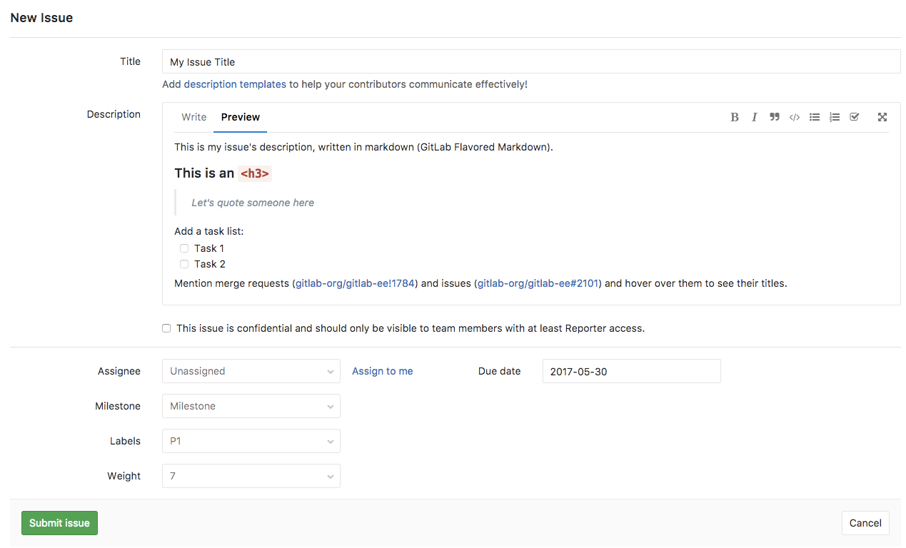 GitLab Issues are the fundamental medium for collaborating on ideas and planning work in GitLab. Creating, moving, closing, and deleting are key actions that you can do with issues.