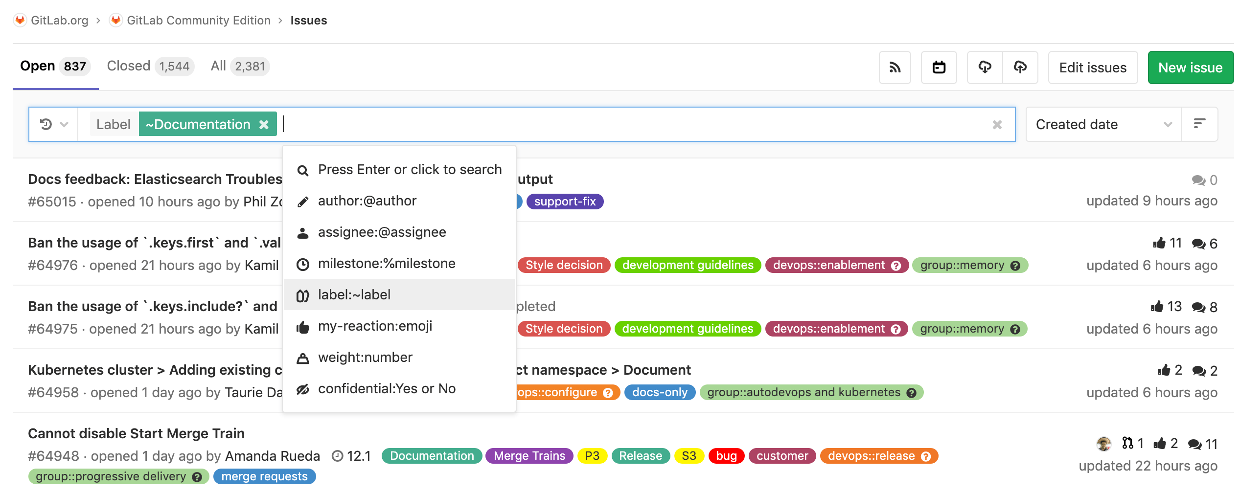 and Priority, which account for objects (issues and merge requests) that have prioritized