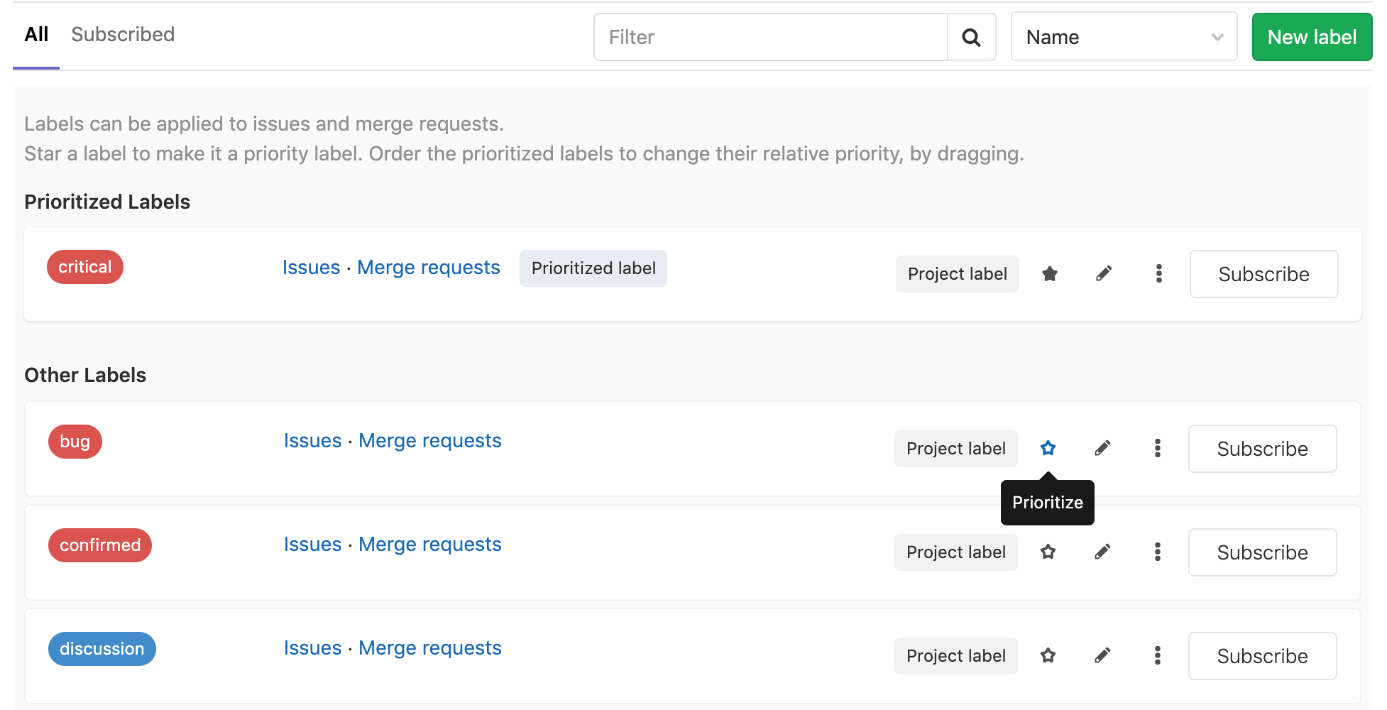 However, both project and group labels can be prioritized on the project label list page since both types are displayed on the project label list page.