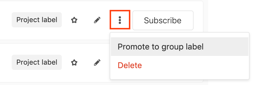 If you are expanding from a few projects to a larger number of projects within the same group, you may want to share the same label among multiple projects in the same group. If you previously created a project label and now want to make it available for other projects, you can promote it to a group label.