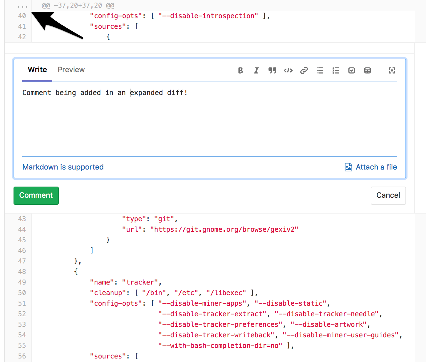 Commenting on any file line in merge requests
