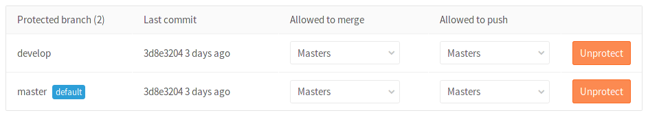 that the master branch is protected by default.
