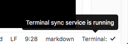 Once you have configured the web terminal for file syncing, then when the web terminal is started, a Terminal status will be visible in the status bar.